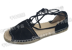 麻边扣线鞋